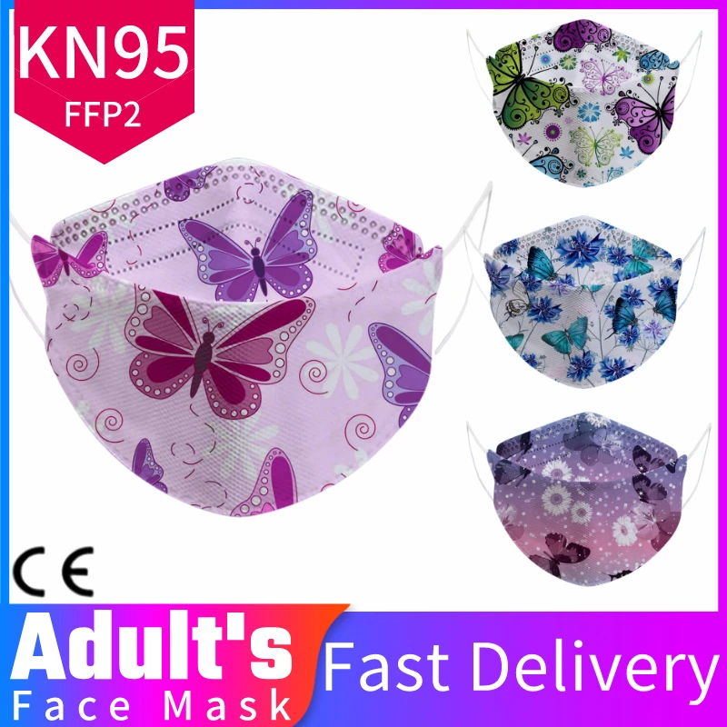Маска для взрослых KN95 FFP2 с принтом бабочки, 5 слоев, респиратор CE KN95, защитная, 10 шт.