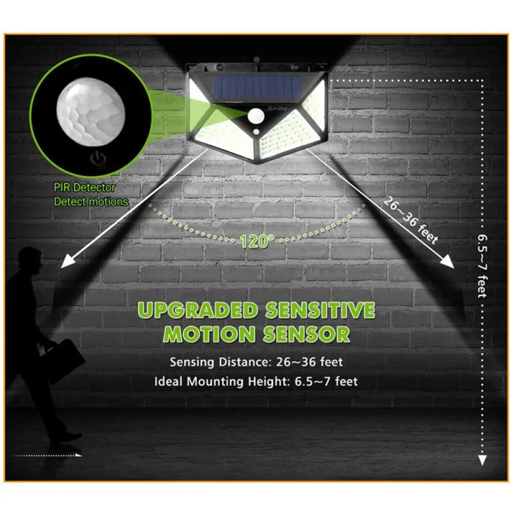 Уличная лампа на солнечной батарее с датчиком движения, 100 светодиодов