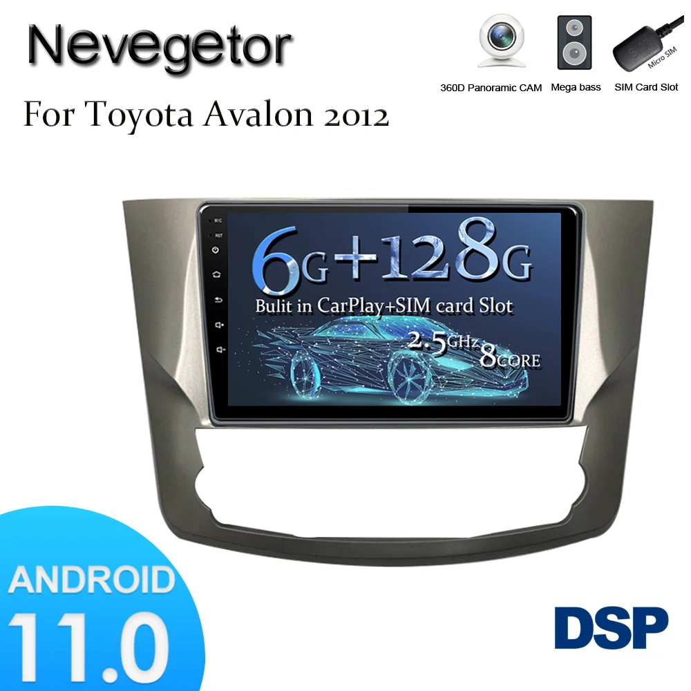 Автомобильный мультимедийный плеер, 9 дюймов, GPS-радио 6 ГБ + 128 ГБ, Android 11, gps, DVD-проигрыватель для Toyota Avalon 2012, Радио HD