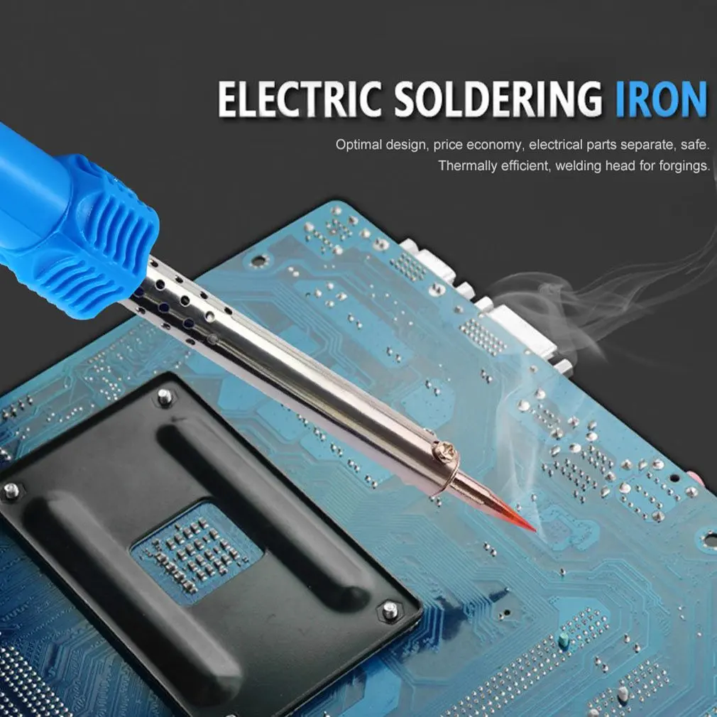 Features: Novel aesthetic appearance, handle is heat resistant resin. Thermally efficient, welding head for forgings. Optimal design, price economy, electrical parts separate, safe. Professional soldering tool, great for lead-free soldering semiconductors Iron plated tip and stainless steel construction offer longer life High quality long lasting ceramic type heater Lightweight with a pencil handle Description: High-quality rubber handle, easy to hold and durable Welding can be suitable for 2.0 below solder wire. Welding nozzle temperature; 100 degree - 380 degree Great for electronics, computer equipment, watch repair and many other hobby and craft projects. How to Solder: Clean the parts to be joined; Clean soldering iron tip and 'tin' all faces of tip with a coating of solder; Heat parts (not solder) to be joined; Apply flux-core solder to heated parts, not the soldering tip, and heat it till solder melts and flows freely. Specification: Power: 30W, 40W, 60W Plug Type: US Plug Material: Metal & rubber Color: Blue & Silver Welding nozzle temperature: 100-380 degree Product Size: 22x2x2cm Power cord length 115cm Weight: 95g, 100g, 110g Package Included: 1 x Electric Soldering Iron Note: Please allow 1-3mm differs due to manual measurement. Due to the different display and different light, the picture may not reflect the actual color of the item.