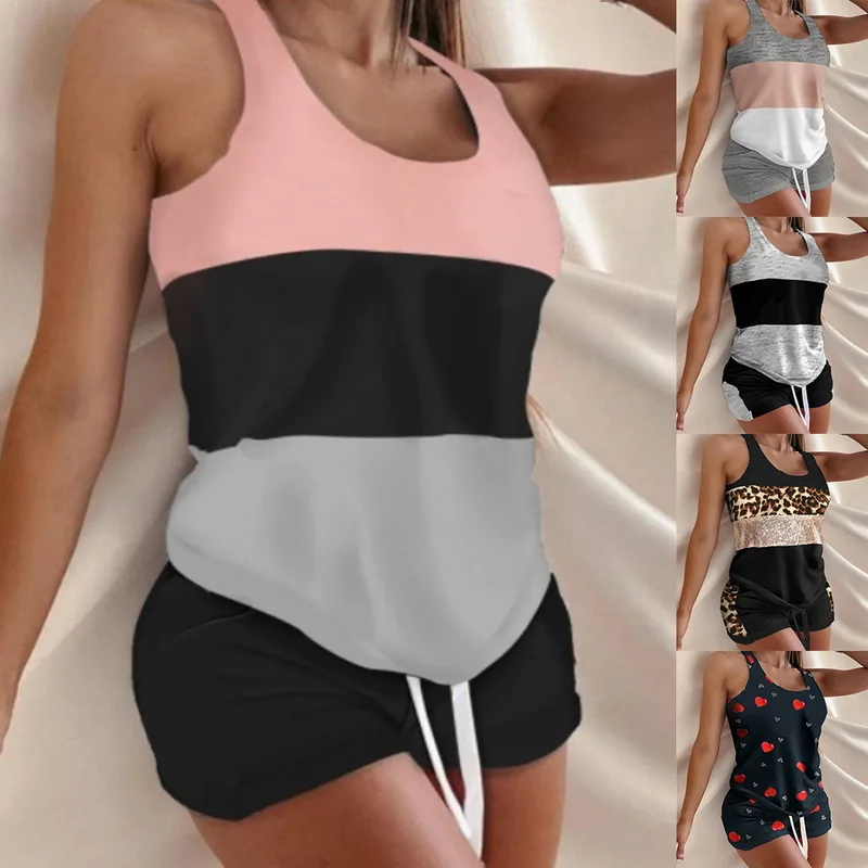 Женский Повседневный костюм-двойка, летний топ без рукавов и с принтом в стиле пэчворк, уличная одежда, домашний пижамный комплект