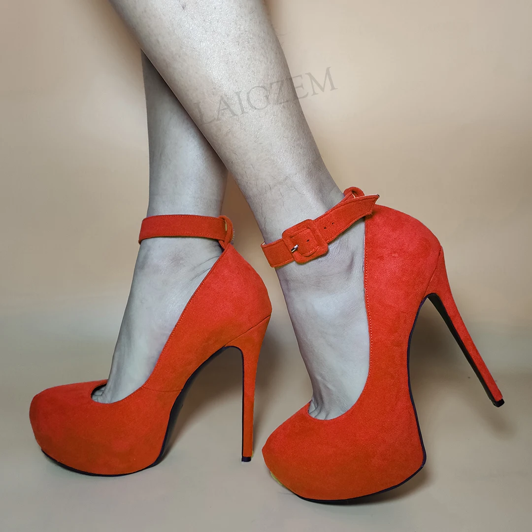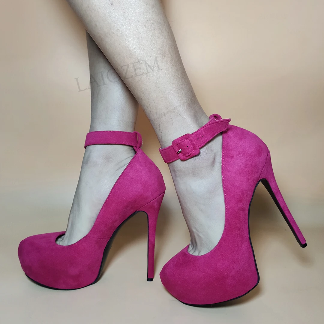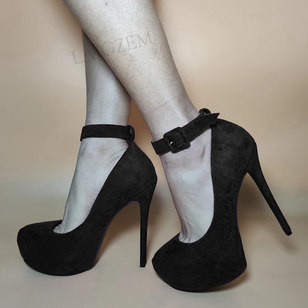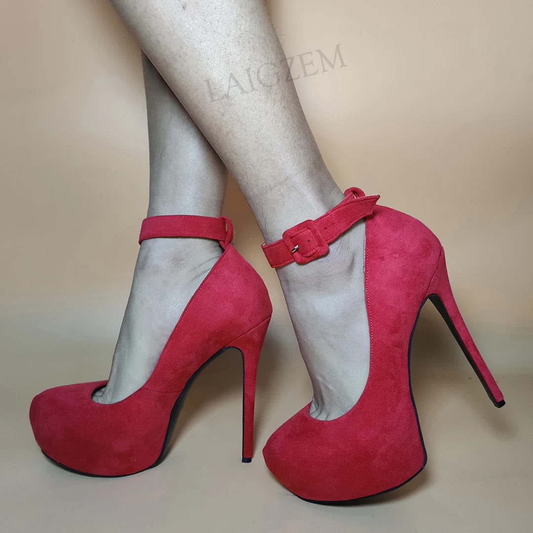 LAIGZEM Women Platform Pumps Ankle Straps High Heels Cosplay Party Prom Salto Alto Zapatos Shoes Woman Large Size 44 45 50 52