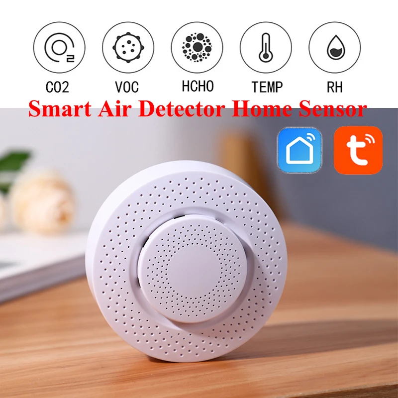 Умный датчик углекислого газа Tuya, датчик CO2, HCHO, VOC, формальдегид, Smart Life, Wi-Fi, автоматический детектор сигнализации для умного дома