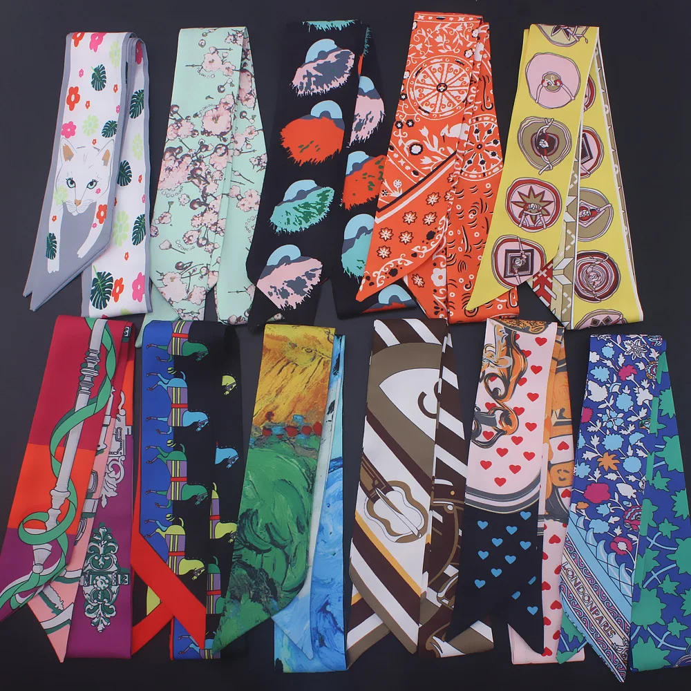 Женский тонкий шарф с принтом веера бабочки, новый маленький шелков...