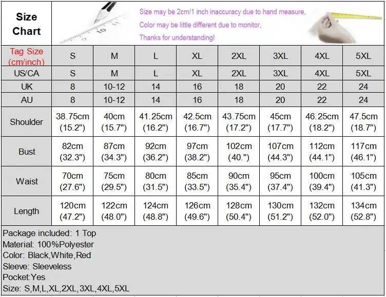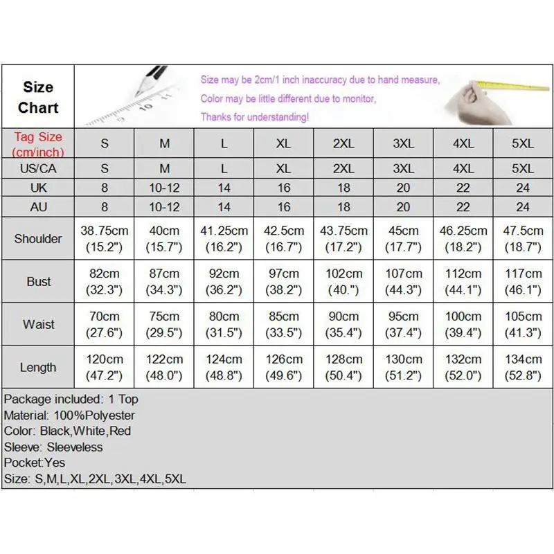 Пожалуйста, ознакомьтесь с размерами в таблице размеров перед покупкой!Посылка входит: 1 ТопМатериал: 100% полиэстерЦвет: черный, белый, красныйРукав: без рукавовКарман: ДаРазмер: S,M,L,XL,2XL ,,,Узор: СплошнойДлина: полная длинаОсобенности: карманСтиль: отдых, повседневныйСезон: летоПовод вечерние, праздник, уличная одежда