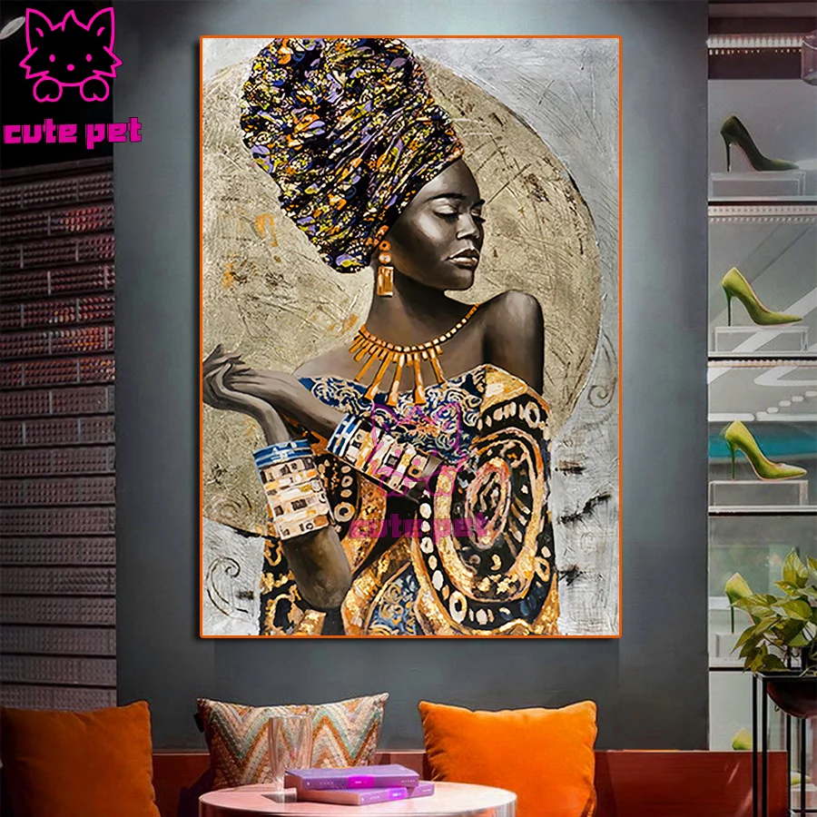 5d алмазная живопись, Африканский Женский портрет стразы, алмазная ...