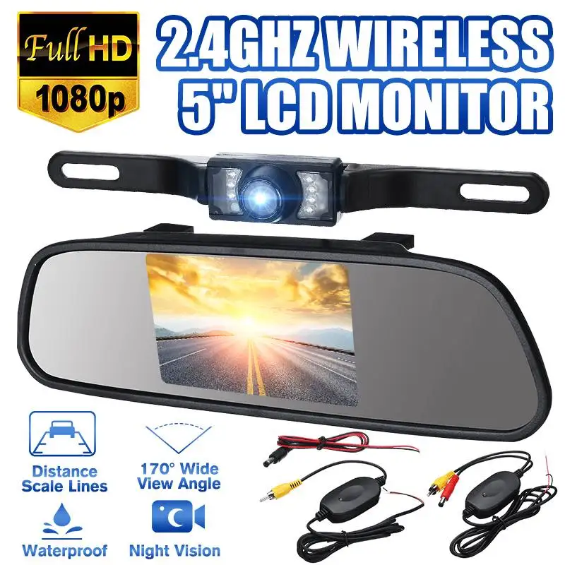Особенности:-Резервная камера: прочная резервная камера заднего вида с полноцветным и поворотным углом. Низкая производительность люкса и угол обзора 170 °. Имеет цветопередачу изображения и автоматический баланс белого.-TFT-LCD экрана монитора дистанционного управления: Эта резервная камера монитора поставляется с 5 "TFT-LCD зеркало монитор экран дисплея и совместимая с цифровыми стандартами NTSC/PAL видео система. Имеет встроенное зеркало заднего вида в сборе с универсальными зажимами.-Монтируемая пластина LIENSE: Автомобильная резервная камера, входящая в эту резервную камеру, является монтируемой. Автомобильная камера заднего вида может быть установлена на номерные знаки с тонким корпусом в стиле бара. Нет необходимости сверлить в автомобиле.-Водонепроницаемая камера ночного видения: IP67 водонепроницаемый уровень для борьбы с плохой погодой. Он также имеет ночное видение и 7 ИК-светодиодный свет для ночной парковки. Включает в себя все необходимые кольца.-Масштабные линии расстояния: оснащен точным линейным дисплеем для правильной парковки и заднего хода, не полагаясь только на боковые зеркала (встроенная камера)-2,4 ГГц Беспроводной приемник и передатчик; Преобразования камеры со стандартным разъемом RCA в Беспроводной камеры.-Избегайте сложного подключения в автомобиле, 10 м Эффективная дальность передачи.