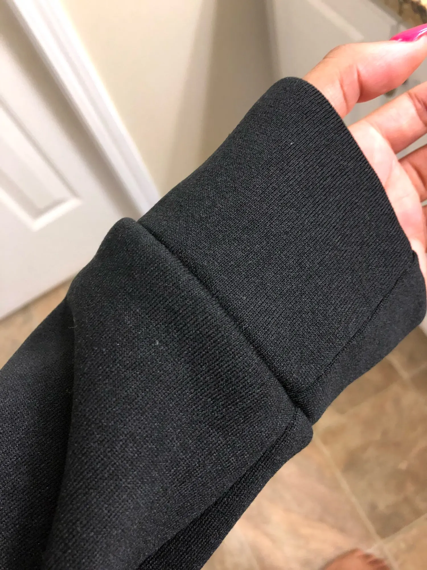 Мягкий, но необычный материал. Мы надеемся, что вы сможете определить, какой материал это из рукава. Дизайн высокого качества, но вы можете слегка увидеть черный квадрат с фото lol. Я ношу большой размер (123 фунтов/55,8 кг, 5'2 ”), так что если вы хотите, чтобы он супер мешковатый размер больше