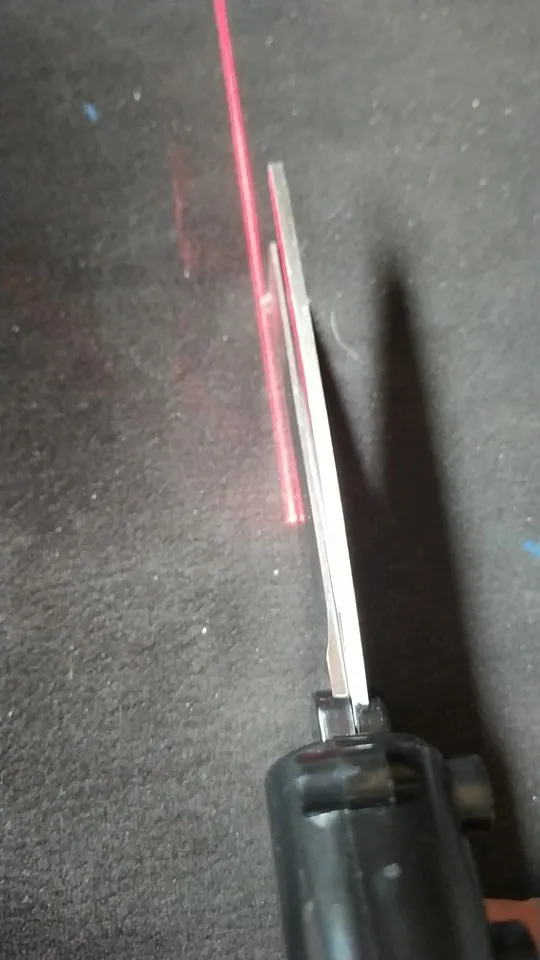 Отрегулируйте лазер, поворачивая два винта сбоку устройства, пока вы не увидите лазерную линию с лезвием