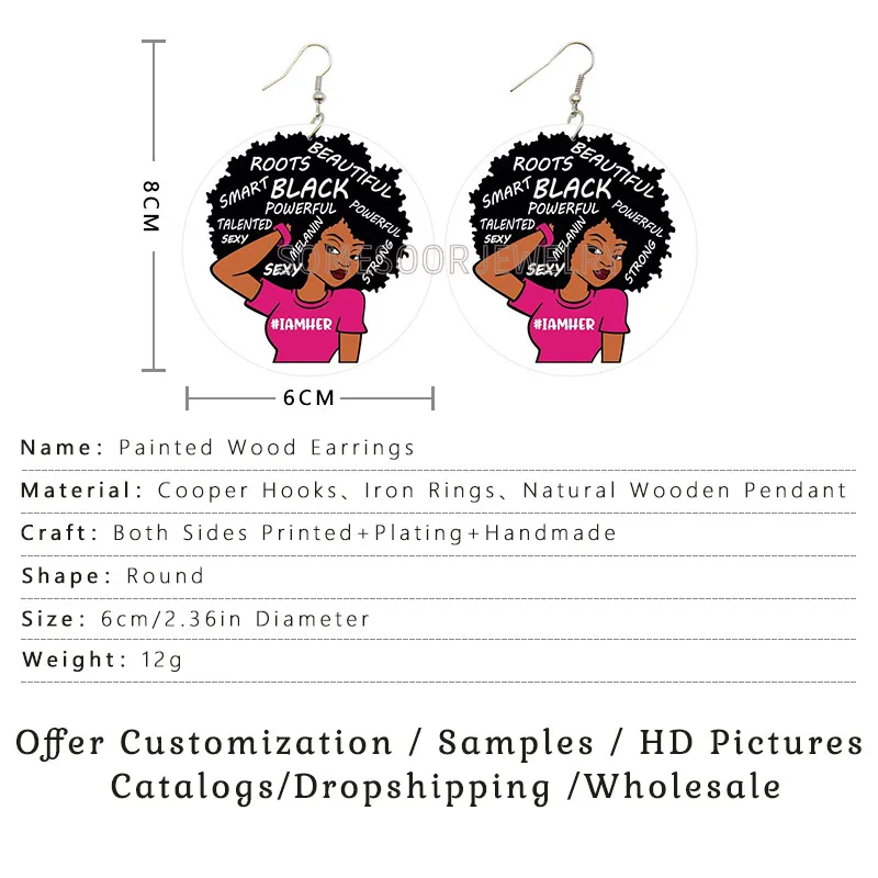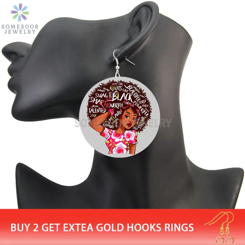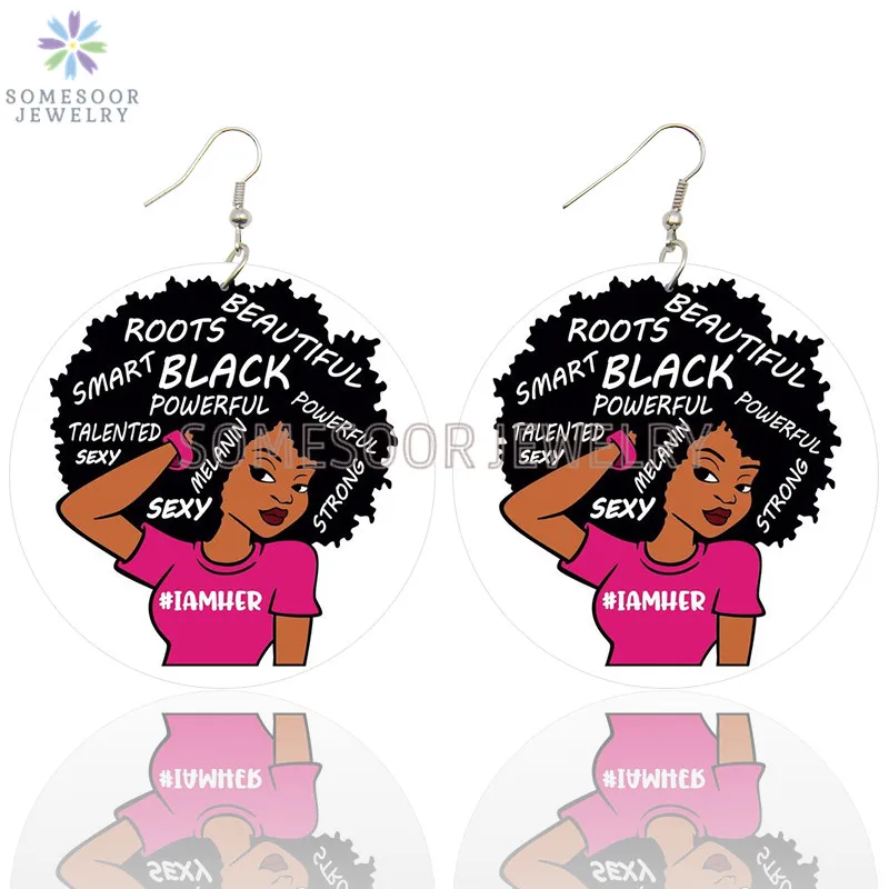 SOMESOOR меланин поппин королева вьющиеся деревянные висячие серьги...