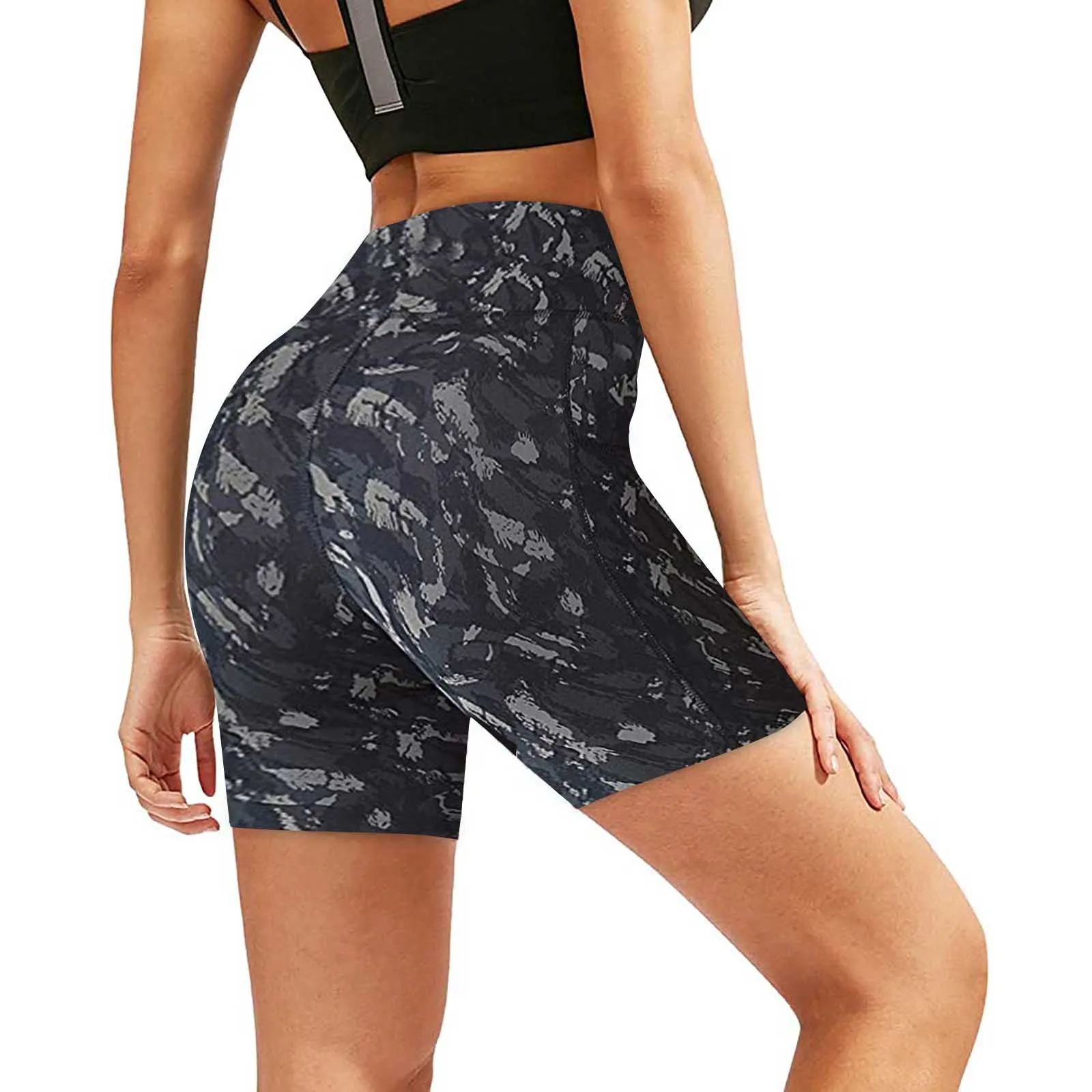 Женские шорты для йоги с высокой талией, с боковыми карманами, для бега, для тренажерного зала, для тренировок, байкерские шорты