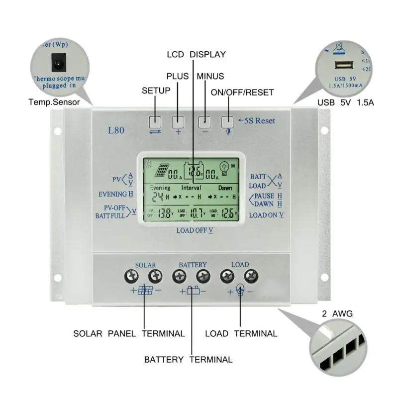 Это совместимый MPPT Контроллер заряда PWM умный/эффективный/энергосберегающий, он не только имеет эффективную функцию зарядки MPPT контроллера для автоматического отслеживания максимальной точки питания, 10%-30% выше, чем обычный регулятор коэффициента зарядки, также имеет экономию энергии в режиме ожидания, более 30% энергии, чем обычный контроллер, потребление энергии в режиме ожидания всего 10 мА-15 мА.