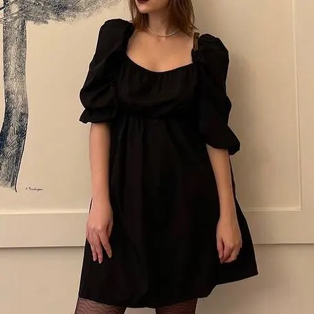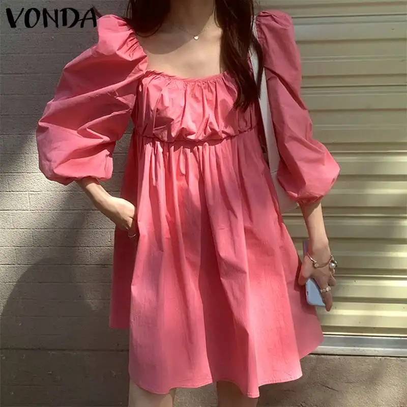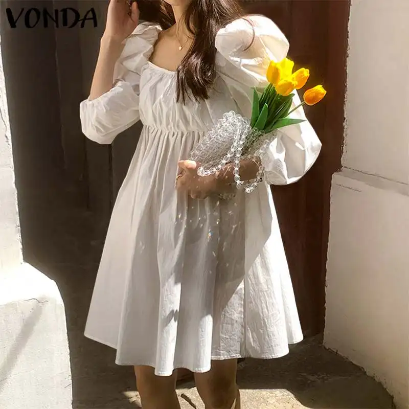 Summer Puff Sleeve Mini Dress Solid Vestidos