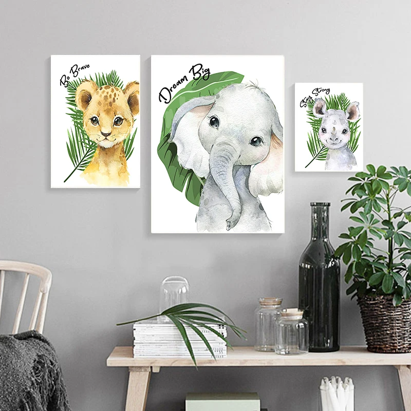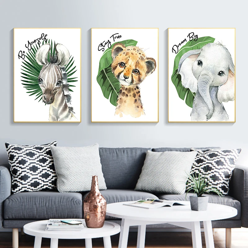 Плакат для украшения дома, Настенная картина с мультяшными животными в скандинавском стиле для гостиной, спальни, детской комнаты, Картина на холсте