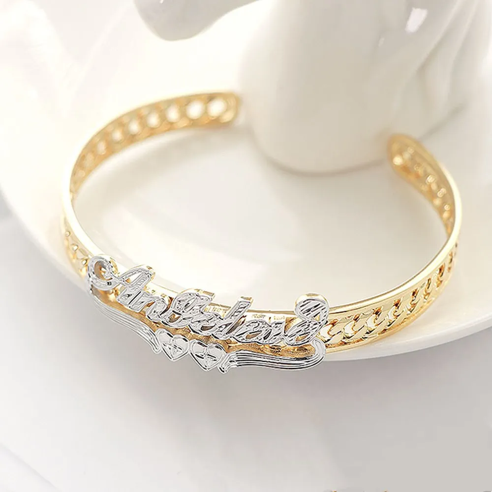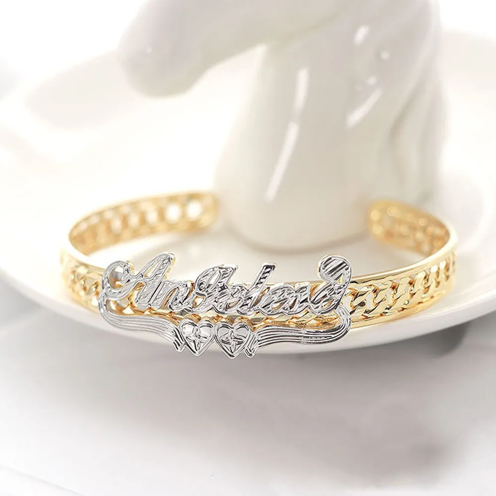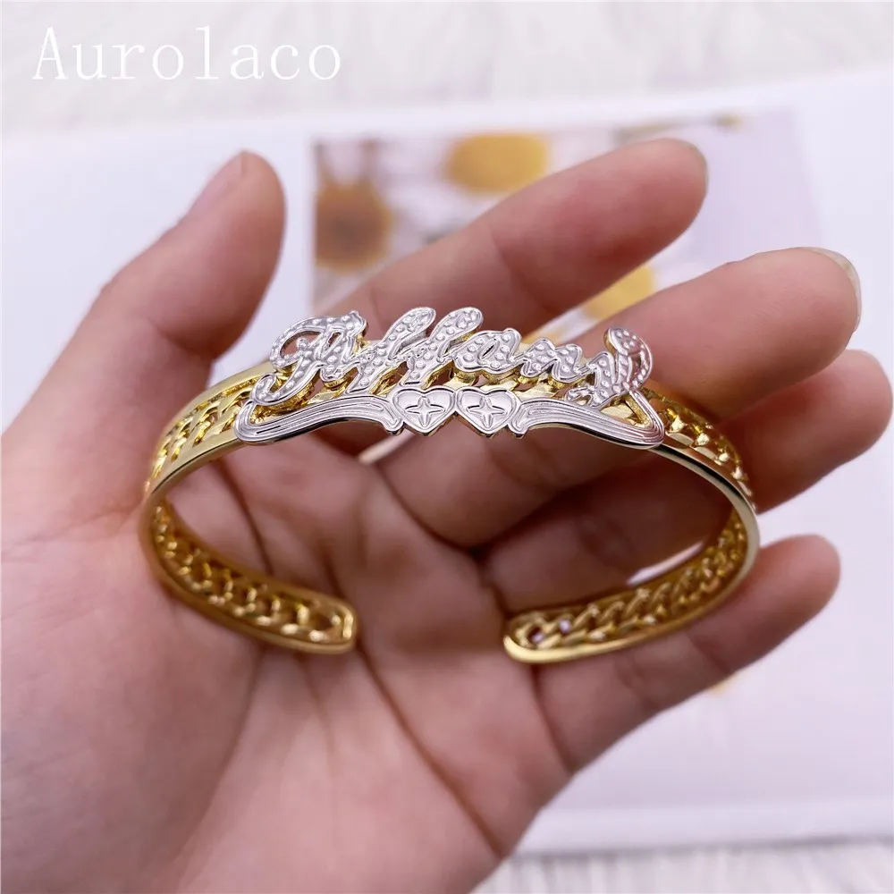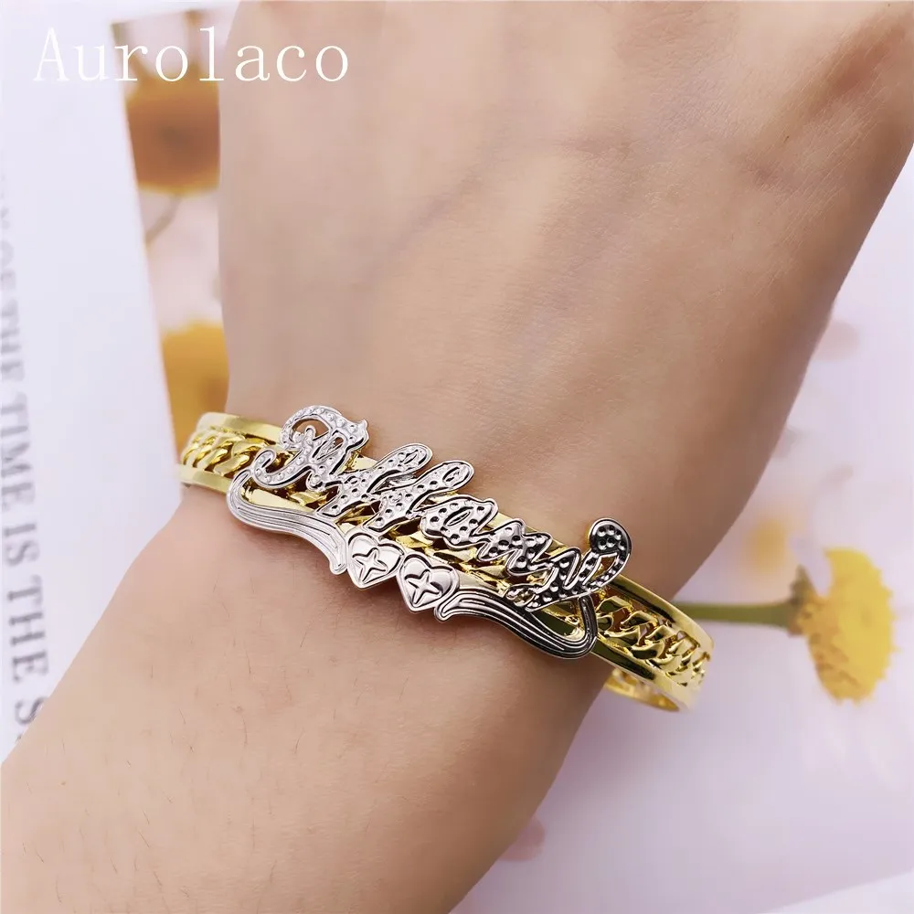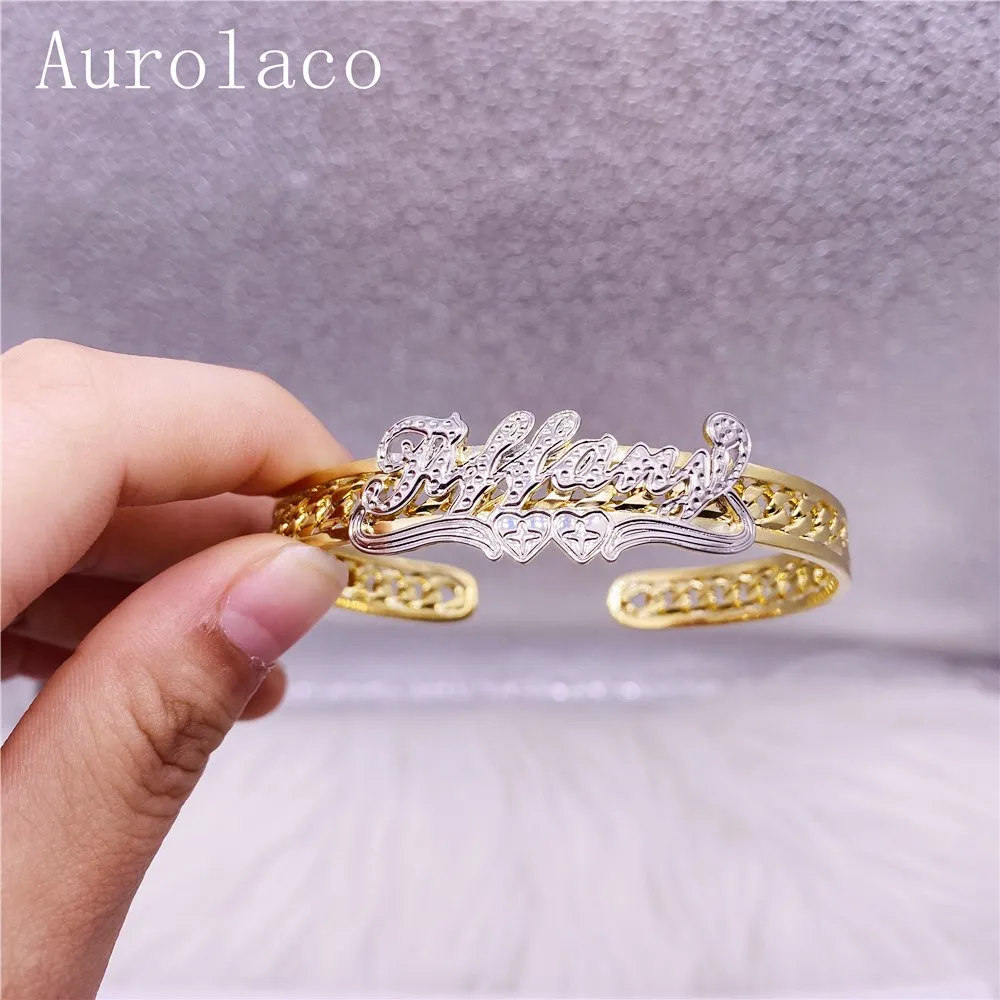 AurolaCo именной браслет с именем на заказ, браслет с позолоченной табличкой из нержавеющей стали, персонализированный браслет