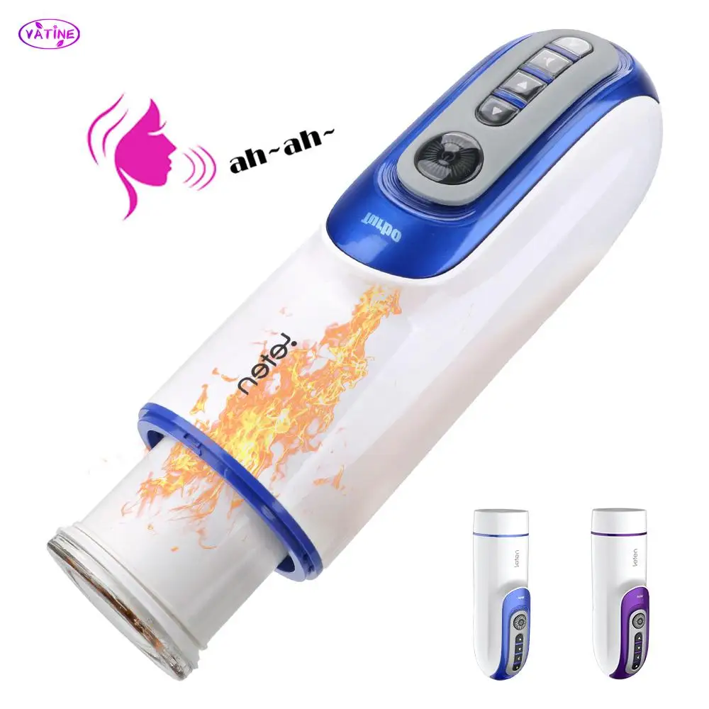 Автоматический телескопический Мужской мастурбатор, секс-игрушки для мужчин, вибратор для пениса, массажер для пениса с подогревом, настоящая киска, силиконовый эротический