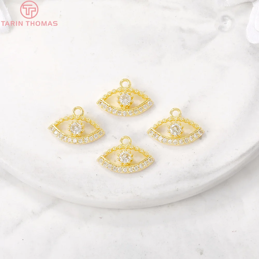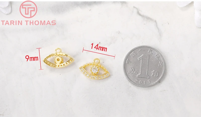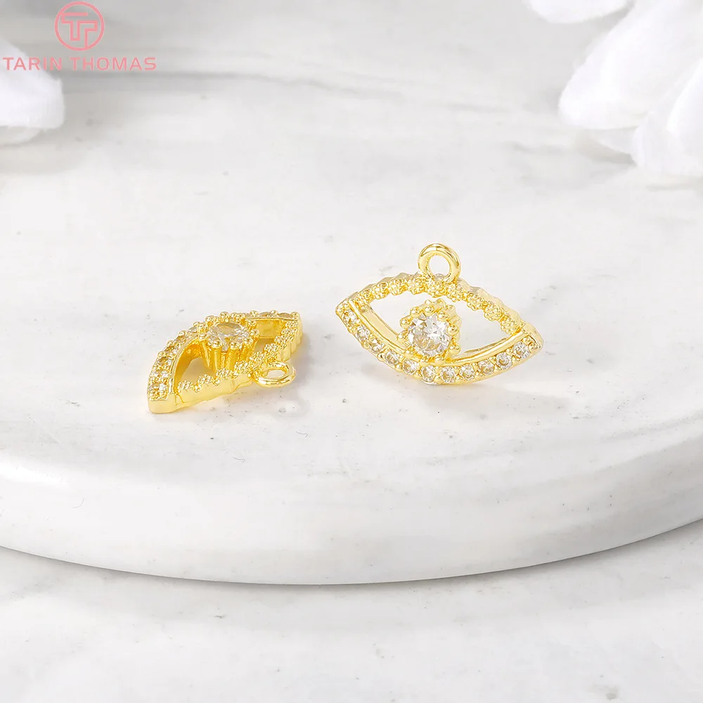 Латунные подвески с циркониевыми глазами, с отверстием 704 мм, 24 к золотого цвета, 6 шт., фурнитура для изготовления ювелирных изделий сделай сам, 9 х14 мм, 1,5 мм