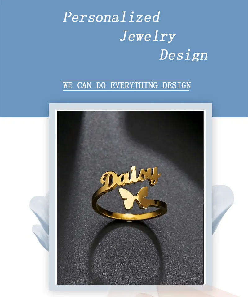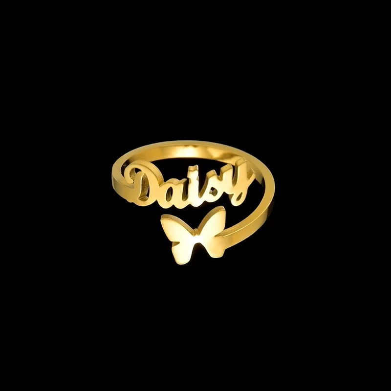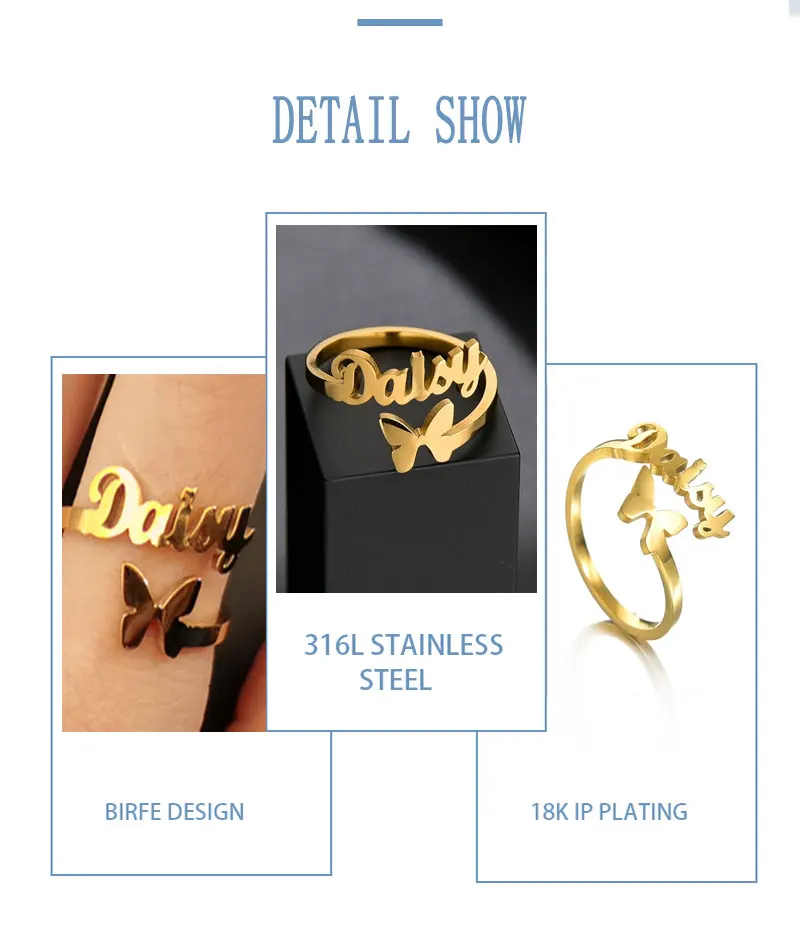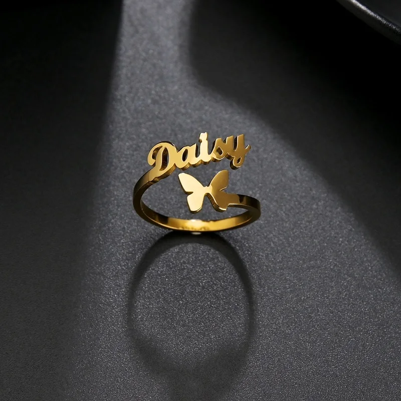 Индивидуальные Кольца из нержавеющей стали с именем бабочки, регули...
