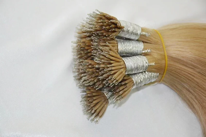 613 блонд Реми нано кольцо звеньевые человеческие волосы для наращивания 16 "18" 20 "кератиновые прямые европейские волосы с микробусинами 50 шт. 1 глокон