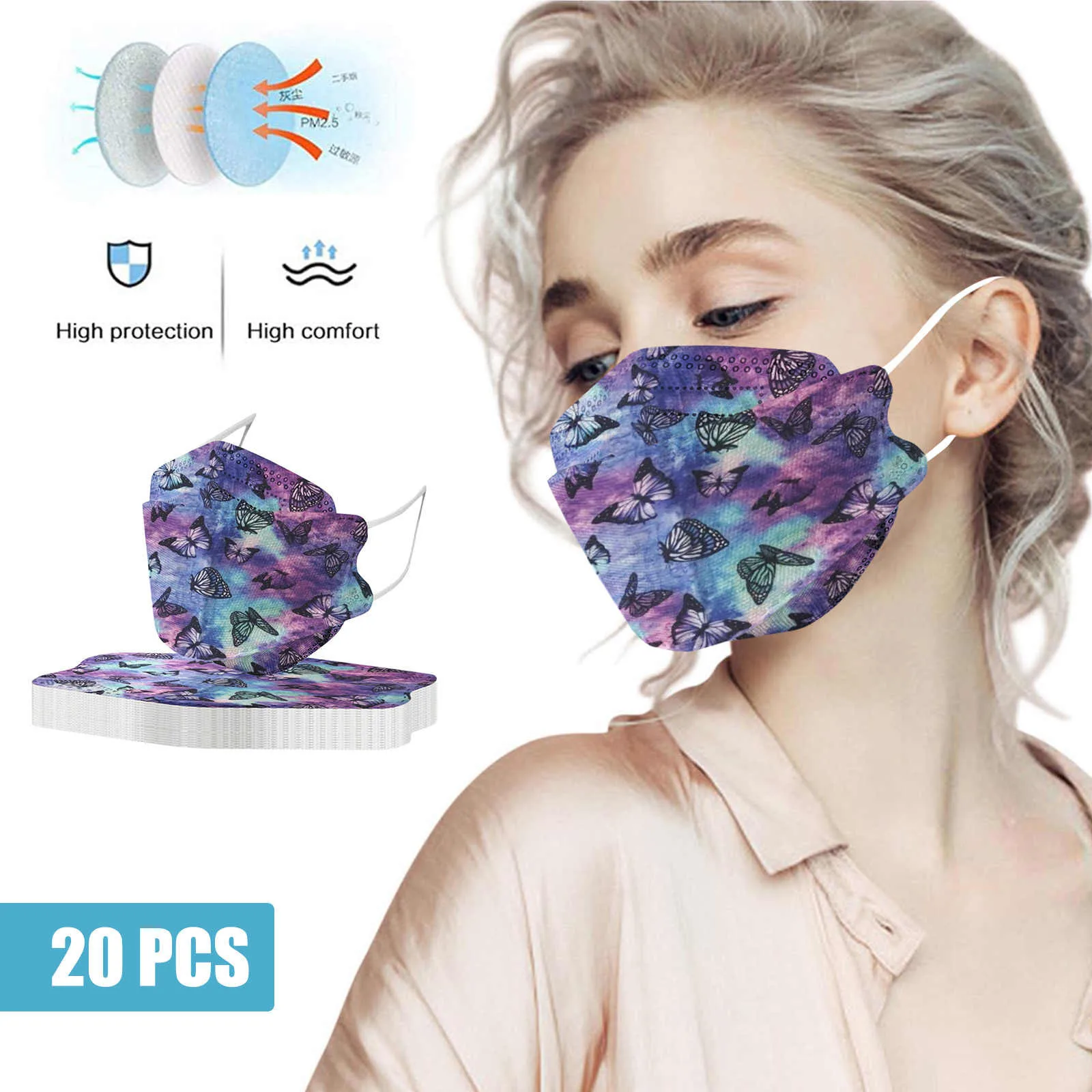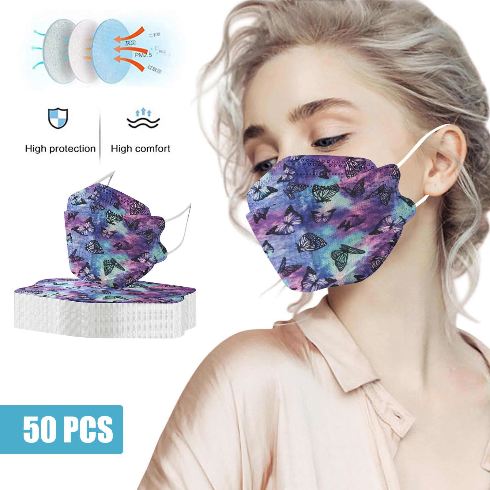 1-50 шт маски для лица с принтом бабочки для взрослых