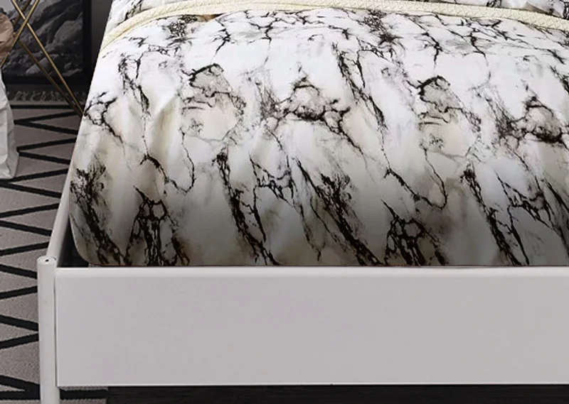 Постельное белье с мраморным рисунком, черное, белое, эластичная на...