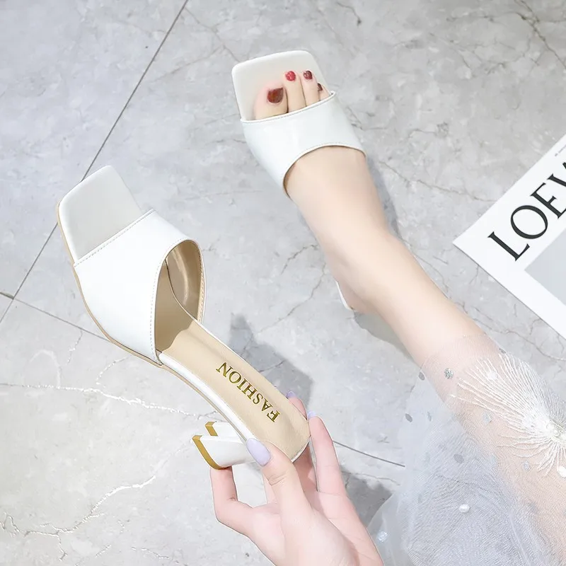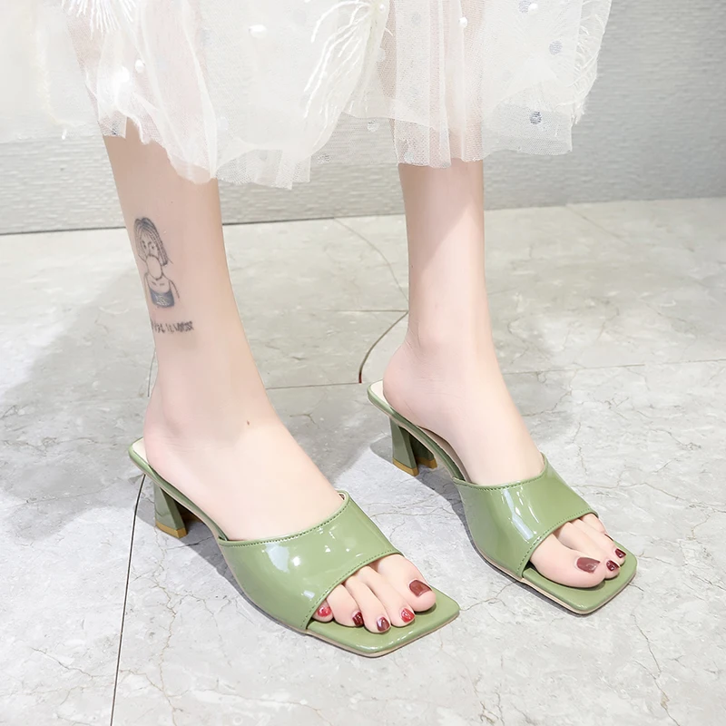 Новинка 2021, яркие женские шлепанцы с открытым носком на высоком каблуке, вечерние классические туфли, сандалии для женщин