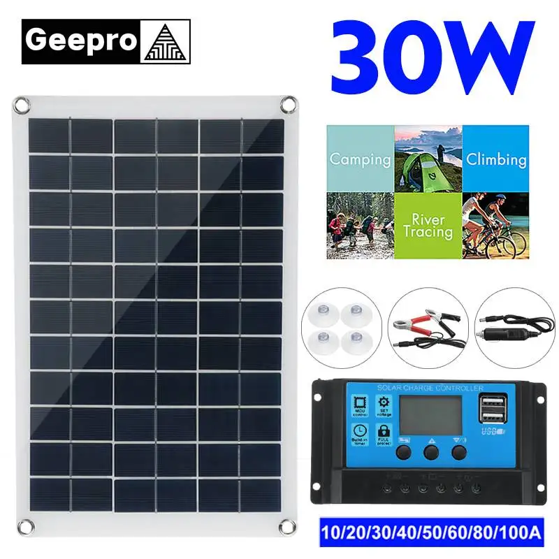 Комплект солнечных панелей, 30 Вт, 12 В, USB, с контроллером 103060 А, солнечные элементы для автомобиля, зарядка яхты, RV, зарядное устройство для мобильного телефона