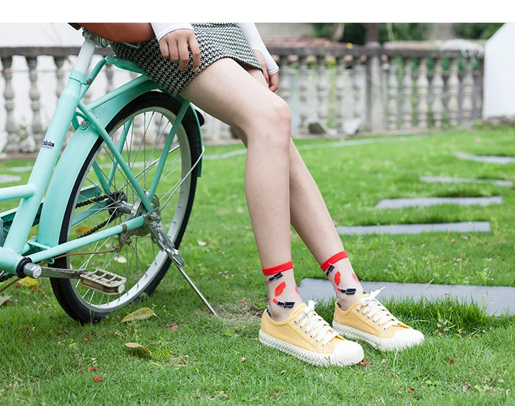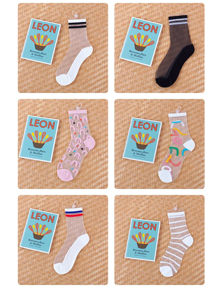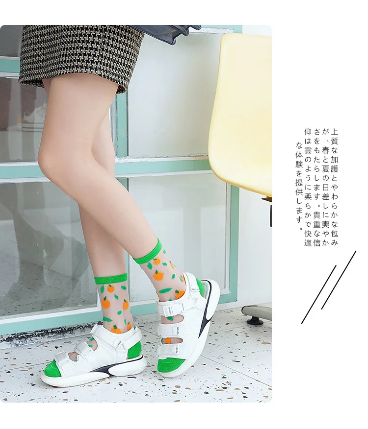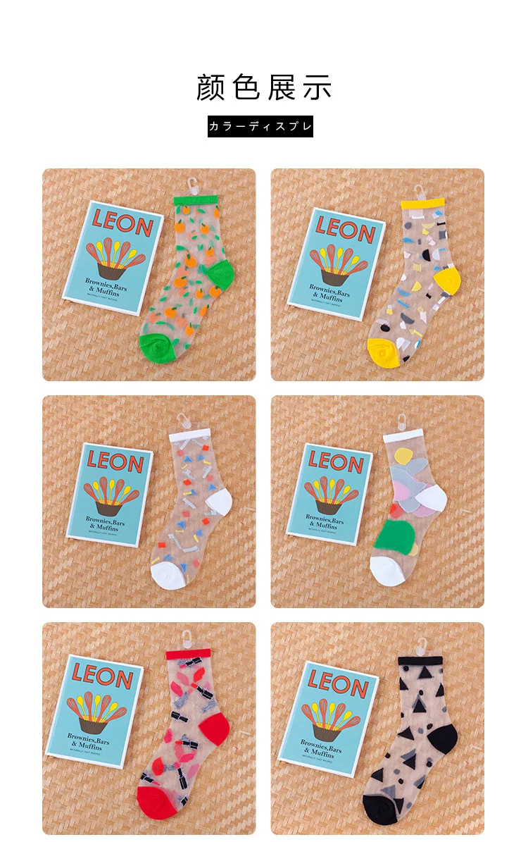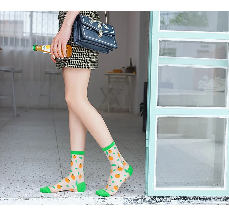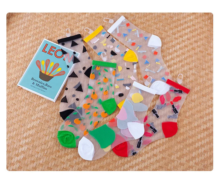 Женские летние тонкие носки карамельных цветов, дышащие милые носки с геометрическим рисунком тростника и мультяшными фруктами для девочек, милые круглые носки из стекла и серебра