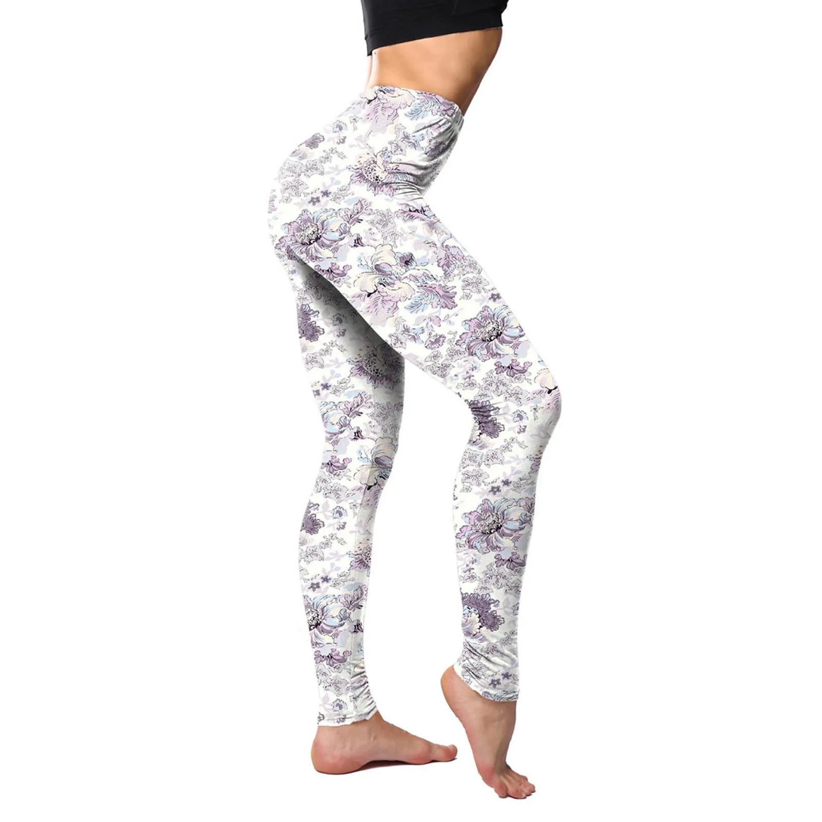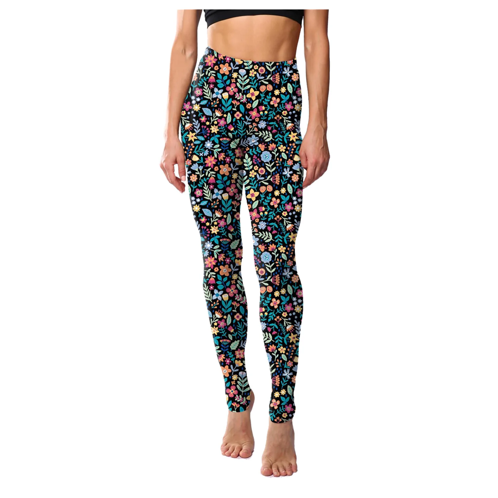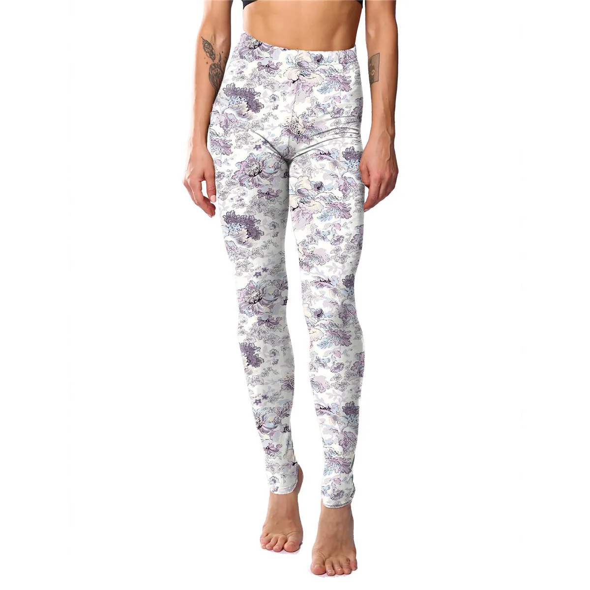 Леггинсы женские, спортивные, классические, с цветочным принтом в стиле ретро, с высокой талией