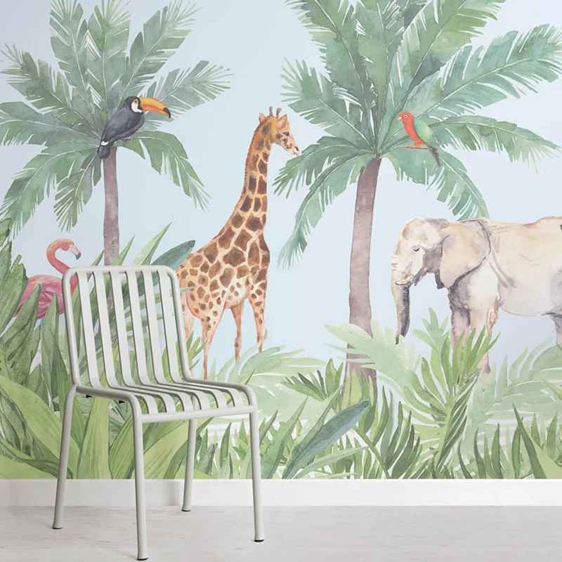 Bacaz акварель дикие запутанные джунгли друзья обои росписи для детей Детская 3d мультфильм обои экзотические животные Kindom Декор