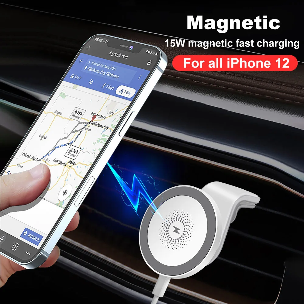 Магнитный держатель для беспроводного автомобильного зарядного устройства 15 Вт для iPhone 12 Mini 12 Pro Max, автомобильный держатель для телефона, вентиляционное отверстие, держатель для GPS мобильный телефон