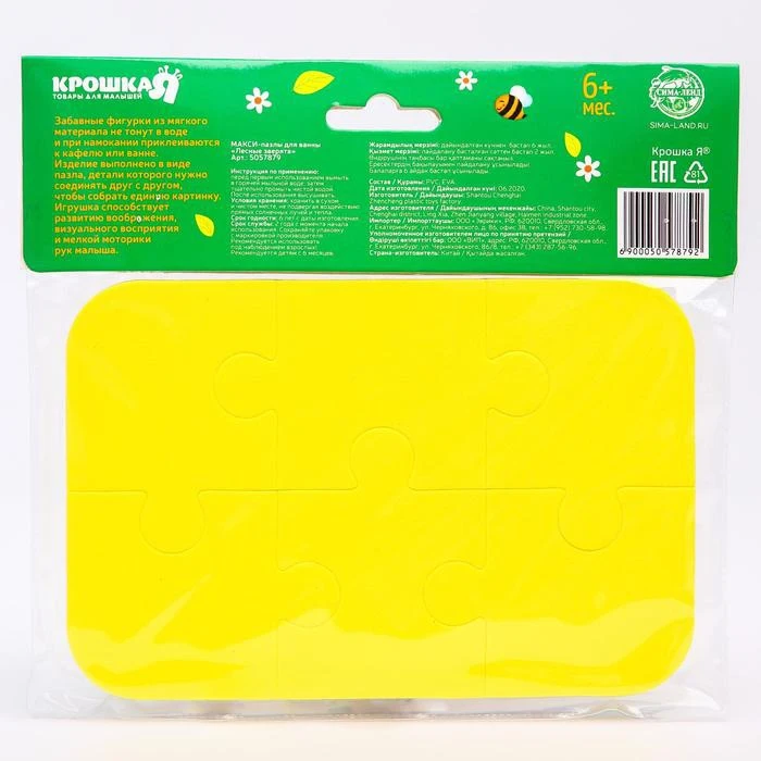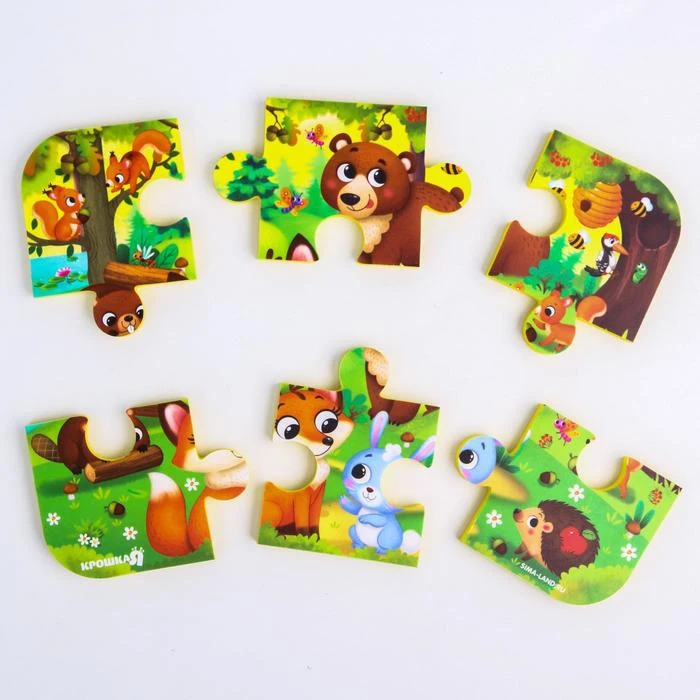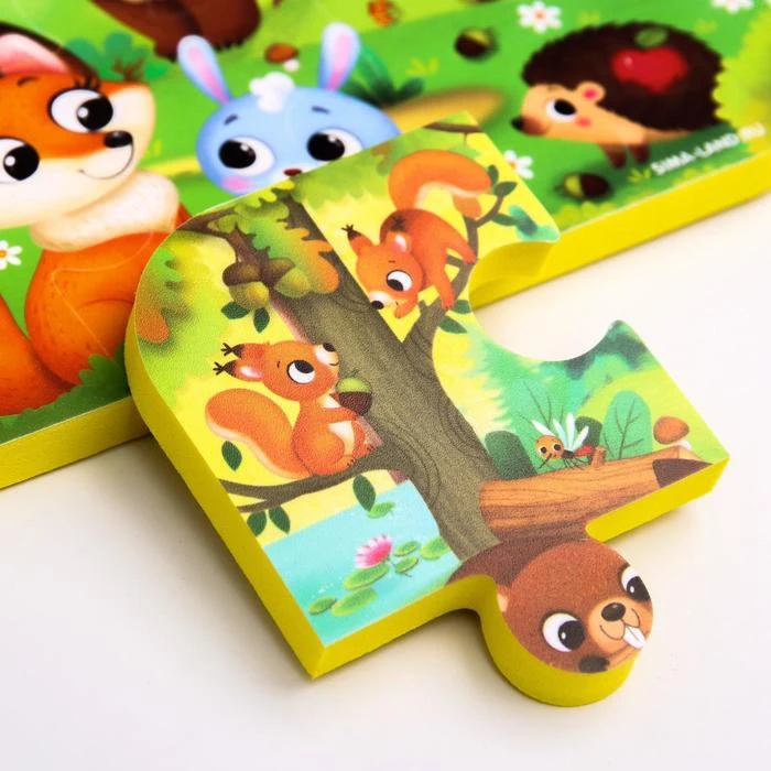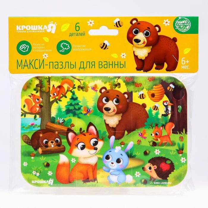 Пазл для ванны, головоломка, Лесные зверята, 6 деталей