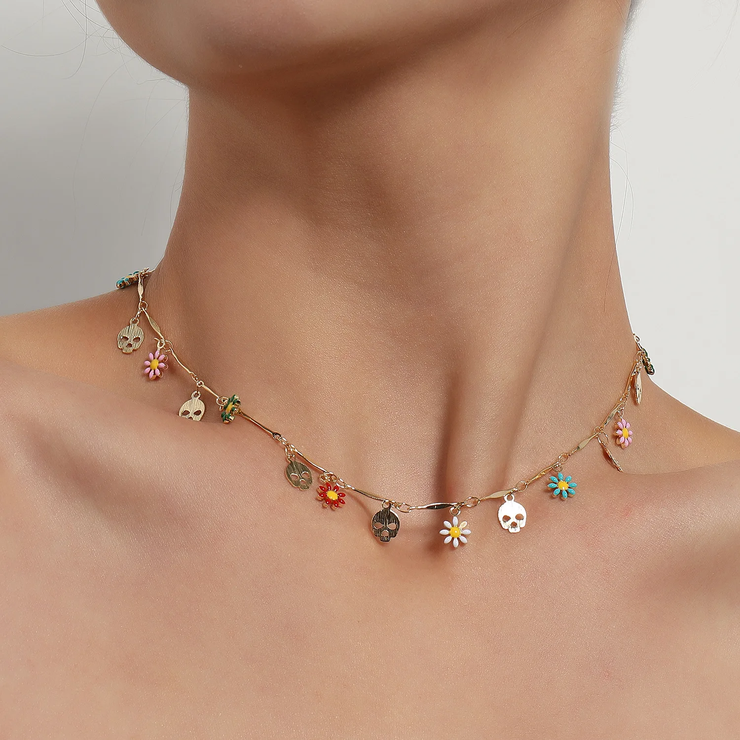 Ожерелье-чокер женское, короткое, с цветами маргариток, цветными бусинами, в Корейском стиле, украшения для отдыха