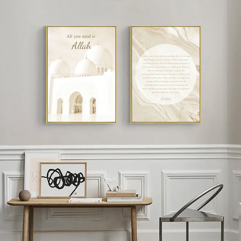 Исламский бежевый плакат, Мраморная цитата, холст, печать, мечеть, Марокко, здание, настенная живопись, богемная картина, Современное украшение для дома