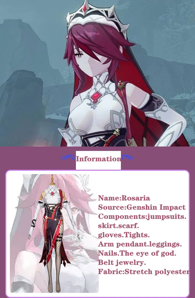Название: карнавальный костюм проекта Rosaria Источник: Genshin Impact Стиль: Аниме/игры Назначение: Косплей Аниме/костюм на Хэллоуин; Женская форма; Вечерние рождественские карнавальные костюмы Размер: XS-XXL Материал: однородная ткань. Полиэстер. Хлопок Компоненты: цельный костюм. Юбка. Шарф. Перчатки. Колготки. Пояс. Подвеска на руку. Леггинсы. Ногти. Глаз Божий. Аксессуары для ремня. Обувь (необходимо приобрести отдельно) Пол: женщин Новый продукт Сделано в Китае