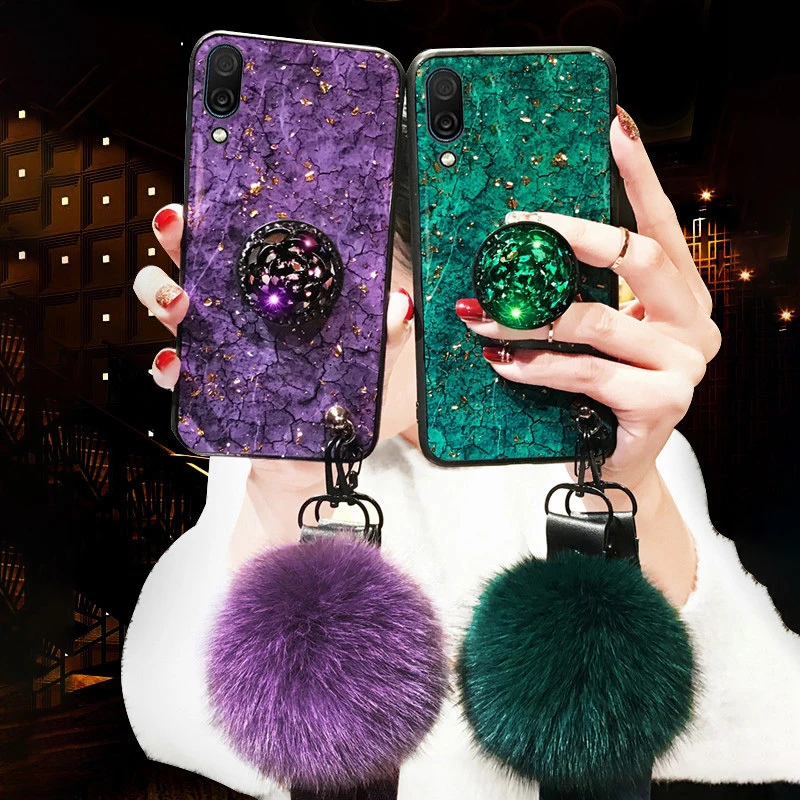 Роскошный чехол для телефона с плюшевым помпоном и ремешком для Sam...