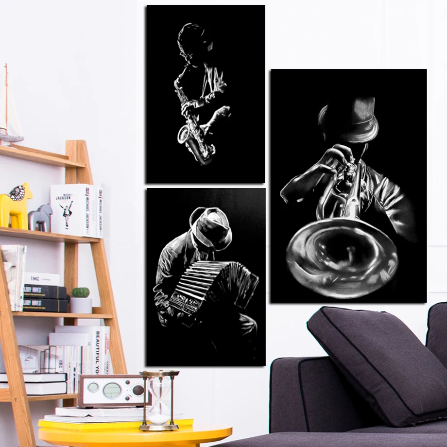Модульная Картина на холсте, черно-белая картина с изображением музыкальных инструментов, Постер в скандинавском стиле для спальни, домашнего декора