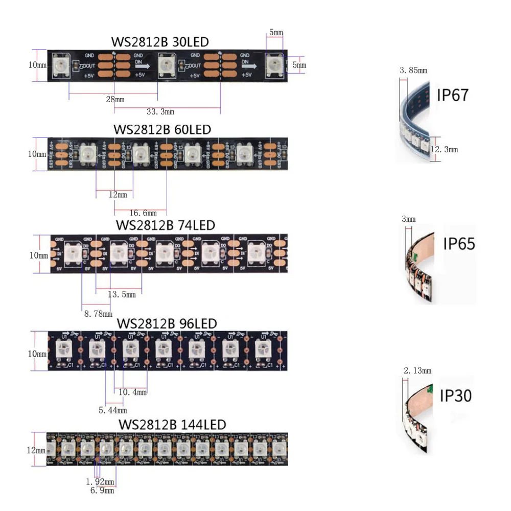 Количество светодиодов на метр30/60/74/96/144LEDS