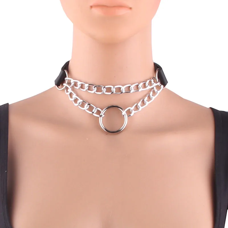 Унисекс, ручная работа, цепочка, колье, сексуальное ожерелье, фетиш, круглый металлический кожаный ошейник, бондаж, ожерелье