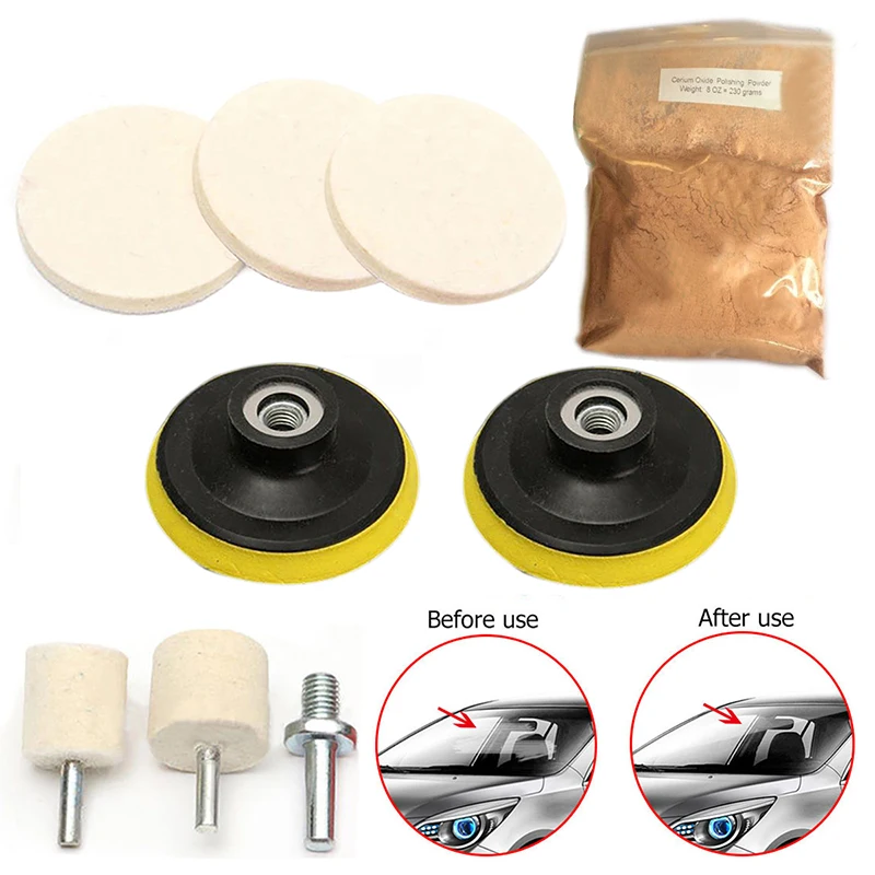 Набор для полировки окон 8 унций, фетровая подложка с петлей и крючком из церия, резьба, колесо, адаптер для глубокого удаления царапин и шлифовки