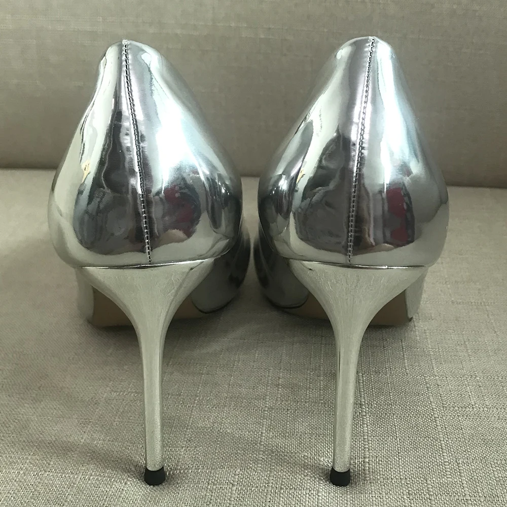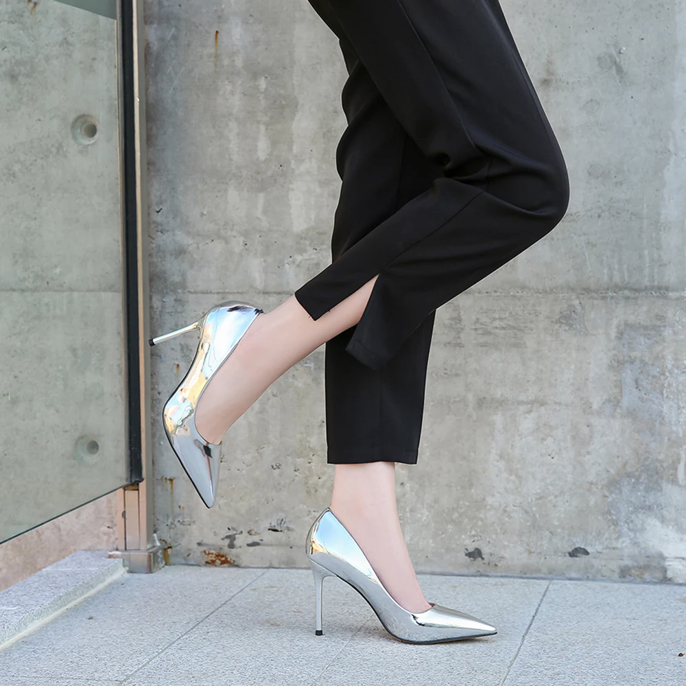 2021 Новое поступление, блестящие серебристые и золотистые туфли для женщин на высоком каблуке 10 см, сексуальные туфли-лодочки, женское платье для вечерние ринки и свадьбы, блестящие туфли 46