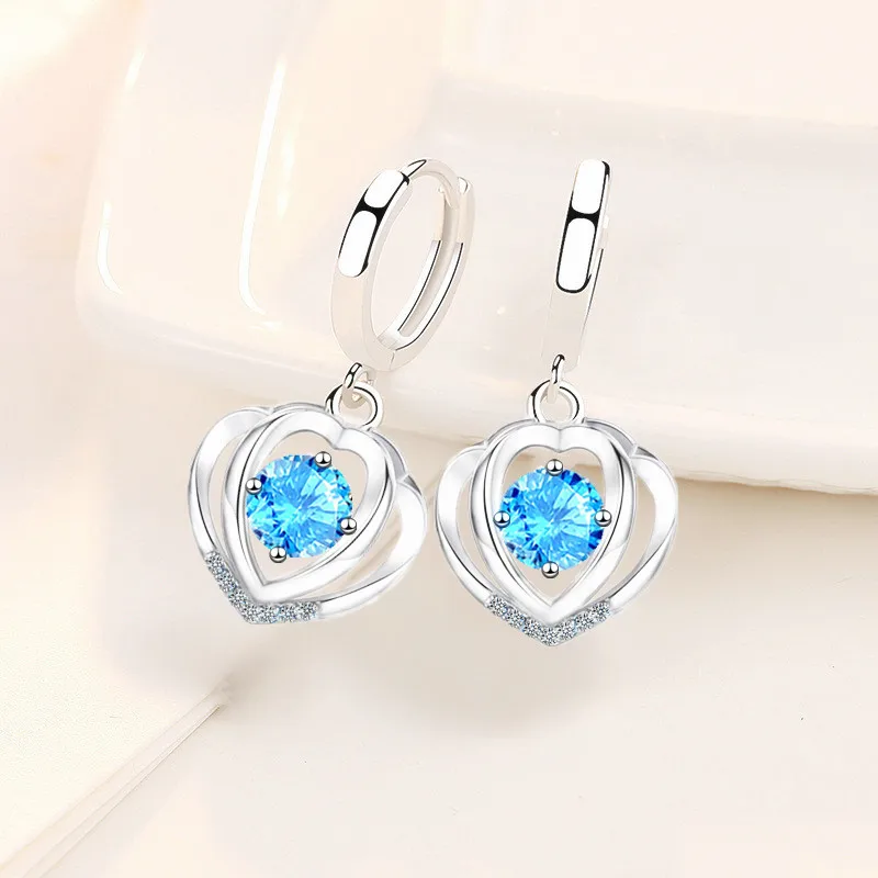 Серьги из стерлингового серебра 925 пробы с сердцем розовые синие с...
