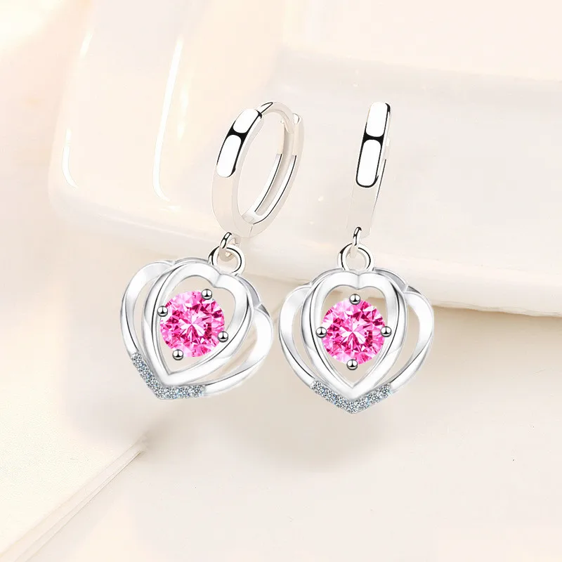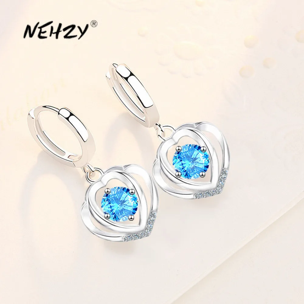NEHZY S925 штамп 2022 новые женские модные ювелирные изделия высокого качества синие розовые фианиты простые серьги в форме сердца