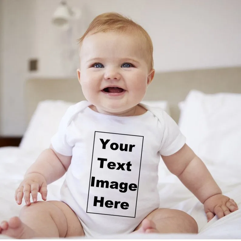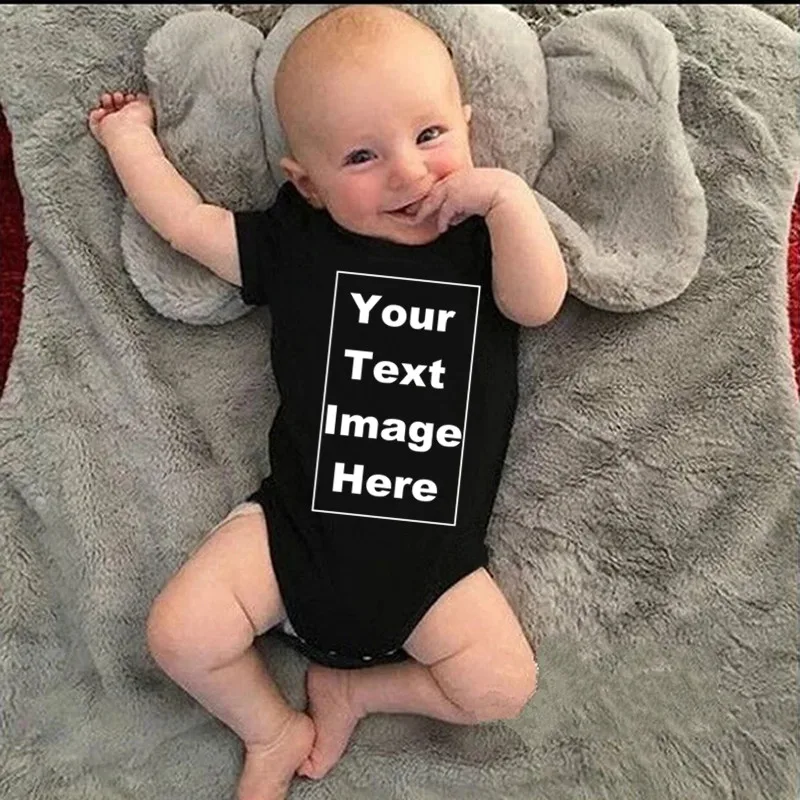 Индивидуальный заказ ваш текст здесь, Детский комбинезон для новорожденных детей, для мальчиков и девочек 100% хлопковая футболка с короткими рукавами детская одежда для малышей