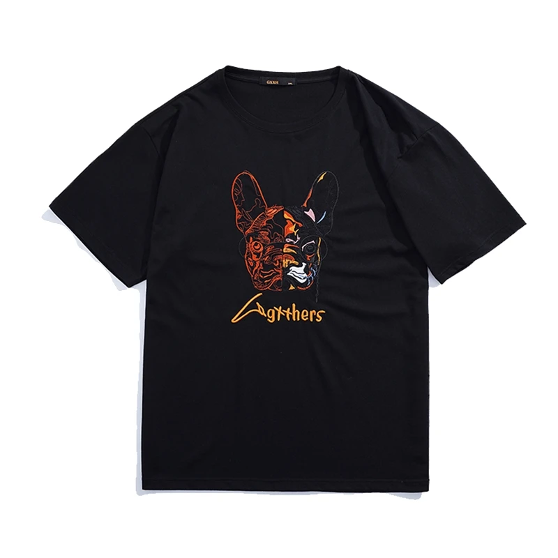 Футболка мужская, из 100% хлопка, с вышивкой в виде головы щенка, GXXH, с коротким рукавом, 7XL
