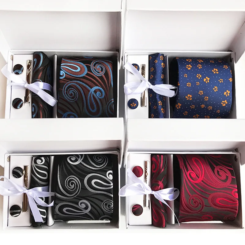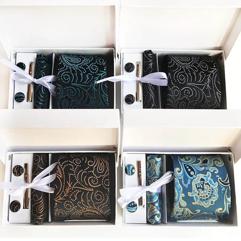 Новые модные наборы галстуков, включая галстук, карманные квадраты, запонки