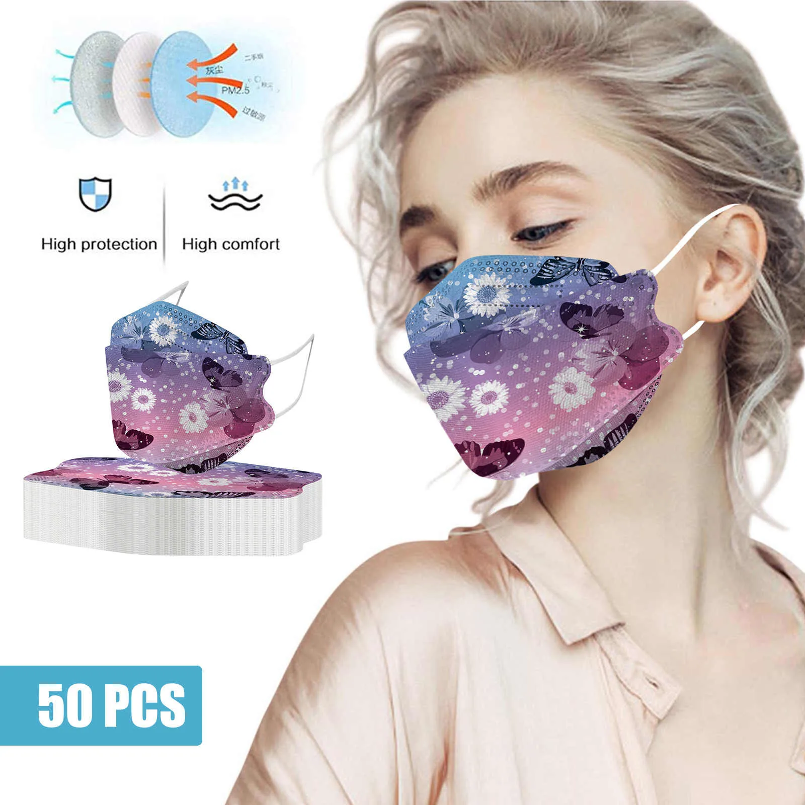 Маска KN95 FFP2 для взрослых, модная маска с принтом бабочки, 50 шт.