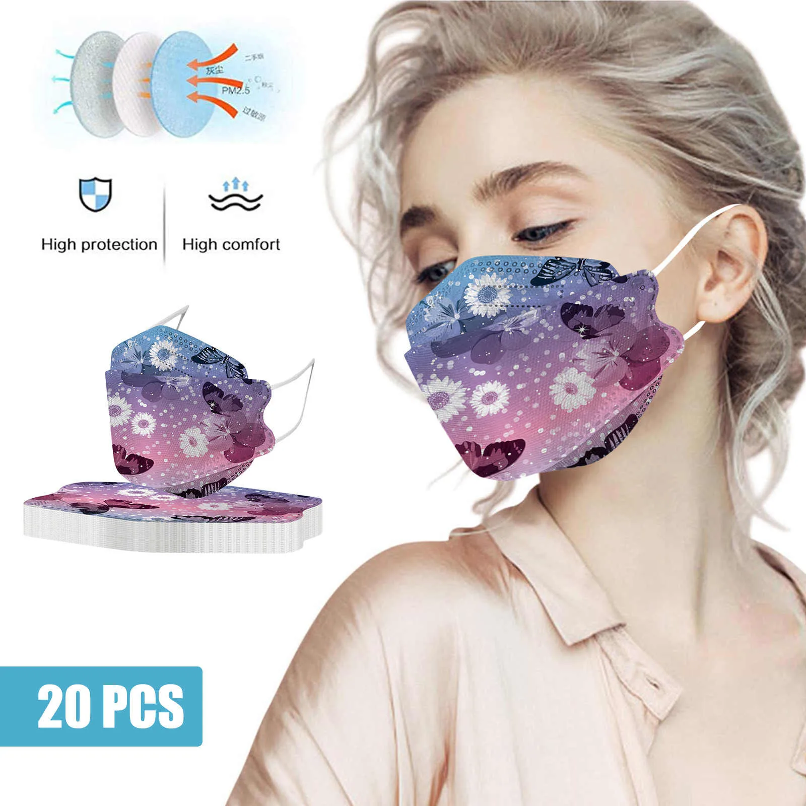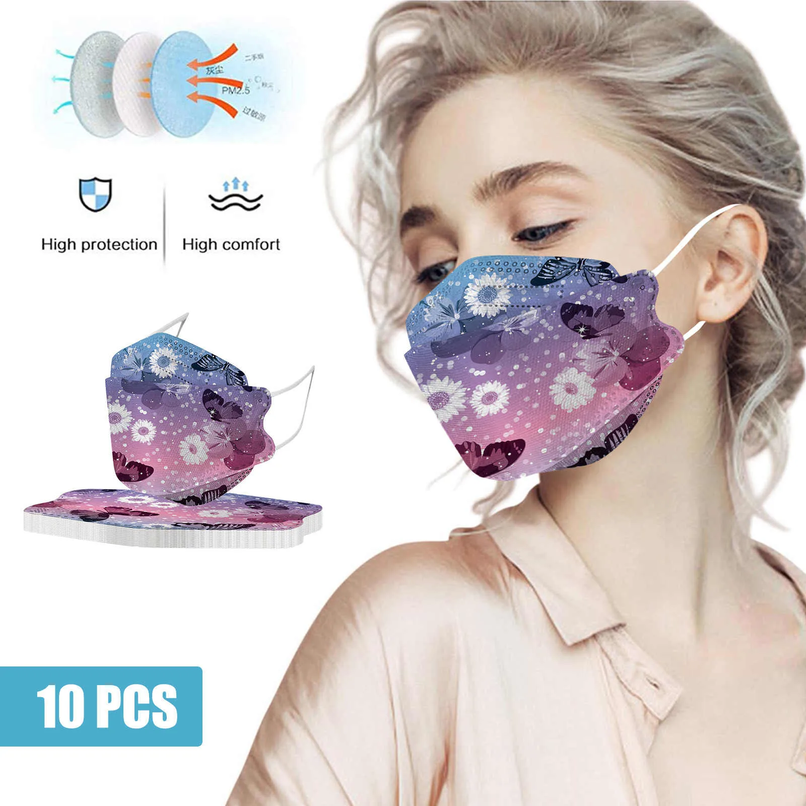 10 шт., одноразовые маски для лица в форме рыбы, с принтом бабочки