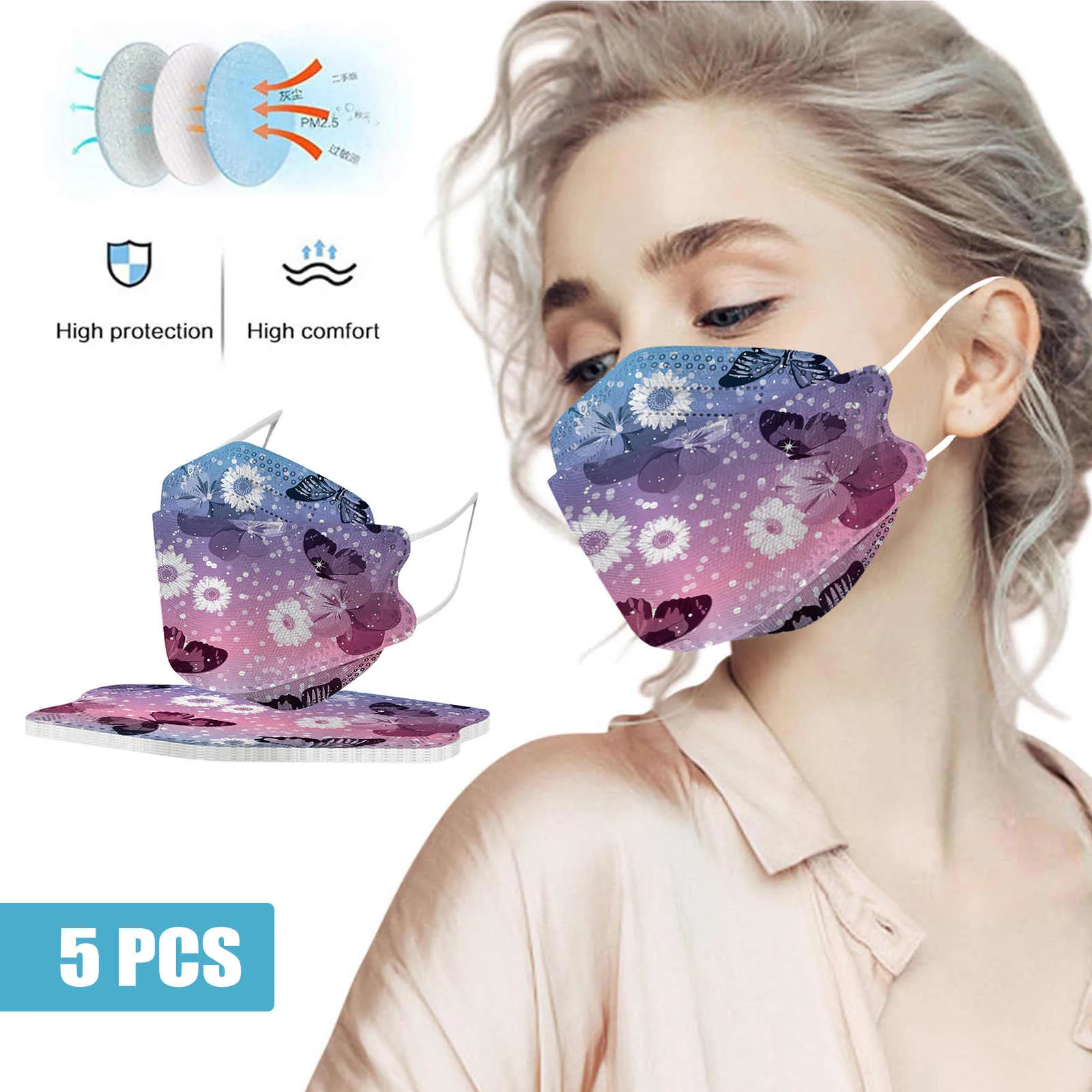 Маска для взрослых KN95 FFP2 с принтом бабочек, 5 слоев, 1-50 шт.