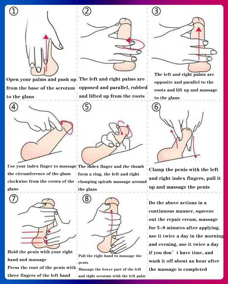 1. Возьмите необходимое количество геля и равномерно нанесите его на член (Избегайте уретры и головки).